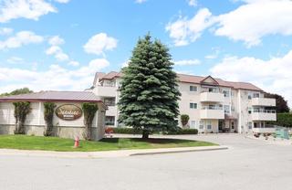 WELCOME to Sunshine Meadows! This well-appointed suite offers 2 bedrooms, 2 bathrooms with many updates in the past year with stainless steel appliances, custom blinds and drapery, wall air-conditioner, and new door-hardware, thoughout. This suite also enjoys a south view with a good sized deck, gas fireplace in the livingroom, large very functional kitchen with open views into the diningroom and livingrooms...